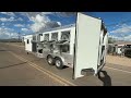 8' Wide, 12' Living Quarters, (2) 7K Axles, G Range Tires, Polished Aluminum Wheels, Dual Hydraulic Jacks, Aluminum Battery Box, 320 Watt Solar Panel, Power Awning W/ Weathersheild, Additional Running Lights